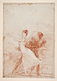 Primer estudio preparatorio para Caprichos, 72. La protagonista de la composición fue calcada por transparencia en el reverso de la hoja, que obviamente resultó invertida. En el diseño del reverso, próximo a la estampa definitiva, se modificaron las figuras del fondo.