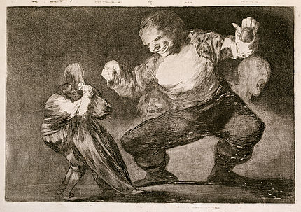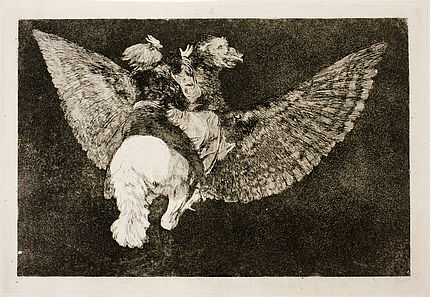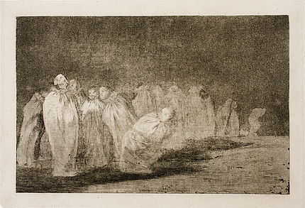 Y he aquí precisamente una de las claves de estas estampas; ¿por qué nos atraen y fascinan si no las llegamos a entender, del mismo modo que nos ocurre con las Pinturas negras? Nos atraen porque llegan directamente a nuestra sensibilidad más que a nuestro intelecto. Olvidamos la razón sin poder descubrir la trama de las mismas. Nos identificamos emocionalmente con los rostros, las miradas, las actitudes, la atmósfera onírica, la cercanía o el tamaño de las figuras. Nos atraen y no sabemos por qué. He aquí la causa de su Modernidad y su vigencia.