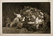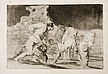 Sobre la suerte que corrieron los cobres tras el fallecimiento del pintor, estos pasaron a ser propiedad de los herederos, permaneciendo en la familia hasta la muerte del hijo del artista, Francisco Javier, en mayo de 1854. Dieciocho láminas parece que fueron adquiridas por Román Garreta, y el 19 de julio de 1856 Jaime Machén Casalins las ofreció por primera vez al Estado español con destino a la Calcografía Nacional, si bien fueron finalmente adquiridos en octubre de 1862 por la Real Academia de Bellas Artes de San Fernando junto a las ochentas láminas de los Desastres de la guerra. Otras cuatro láminas –las que no figuran en la edición de la Academia de 1864 y que fueron publicadas por primera vez en 1877 en la revista francesa L’Art– se separaron del conjunto y pasaron a ser propiedad del pintor Eugenio Lucas, el cual intervino en la valoración de las Pinturas negras de la Quita del Sordo en octubre de 1856, y es muy posible que las recibiera en compensación del trabajo o, simplemente, que optara por comprarlas. A la muerte de Lucas en 1870 los cuatro cobres fueron ofrecidos a la Academia, si bien la falta de acuerdo hizo que finalmente saliesen de España, siendo adquiridas por el comerciante francés Edmont Sagot.