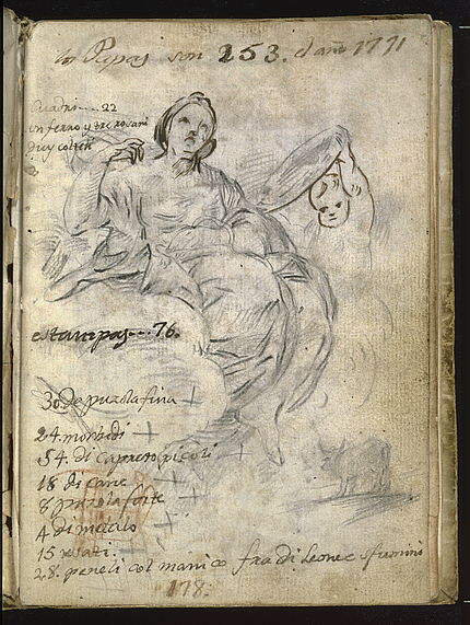 Las anotaciones de carácter artístico mezclan las cuestiones prácticas, como las cuentas de materiales o una receta para la fabricación de barniz, a otras más reveladoras, como las ciudades que visitó en Italia y el registro de algunas pinturas que le llamaron especialmente la atención: en Génova, el Martirio de los santos Blas y Sebastián, de Carlo Maratti, la Asunción de la Virgen, de Guido Reni, en la iglesia de San Ambrosio, así como dos de Rubens en el mismo lugar, Circuncisión y Predicación de san Ignacio. También en Génova menciona una de Guercino, quizá Muerte de Cleopatra (Palazzo Rosso), citada entonces en las guías de la ciudad. En Venecia, un Veronés de gran tamaño, seguramente Las bodas de Caná (Musée du Louvre), del refectorio de San Jorge. En Parma, Virgen con el Niño y san Jerónimo, de Correggio, adquirido hacía poco por la ciudad. En Loreto, una Madonna, de Rafael, quizá la excelente copia existente allí de la Virgen del velo (Musée du Louvre). Anotó asimismo “muchos originales” de los escultores Bernini y Algardi, sin precisar cuáles le interesaron más.
